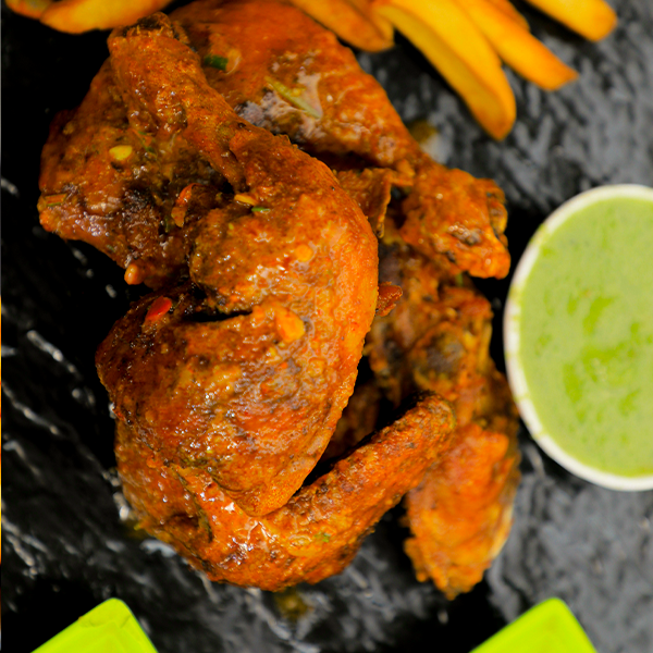 Roasted half chicken recipe, crispy skin, and juicy, tender meat.